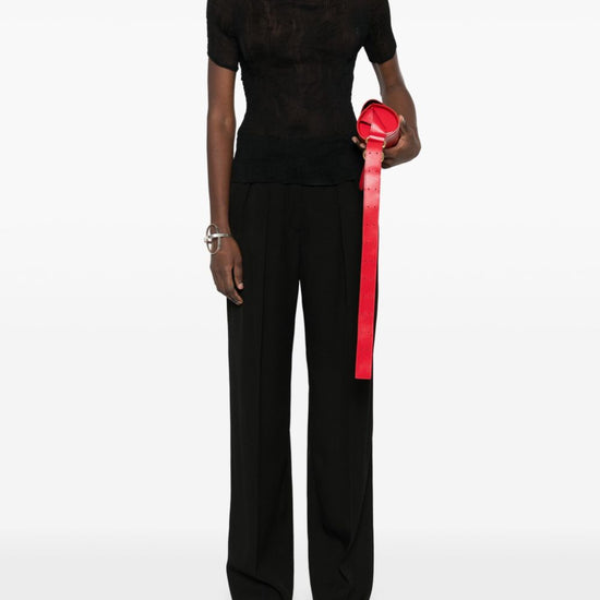 Black concealed front button, hook and zip fastening belt loops two diagonal pockets to the sides two rear welt pockets straight-leg trousers size and fit - this piece fits true to size. we recommend you get your regular size. model is 1,75m / 5ft 8in wearing size 40 (it)