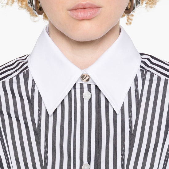 White front button fastening buttoned cuffs candy stripe pattern classic collar striped shirt size and fit - this piece fits true to size. we recommend you get your regular size. model is 1,75m / 5ft 8in wearing size 40 (it)