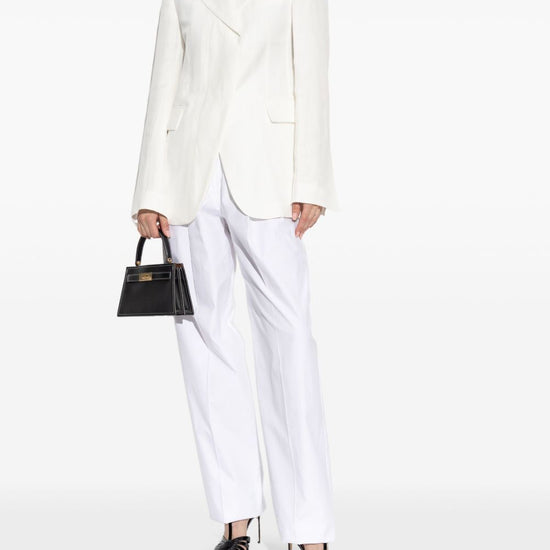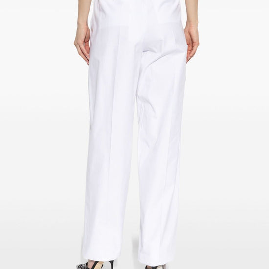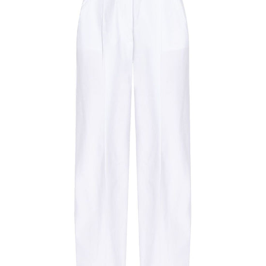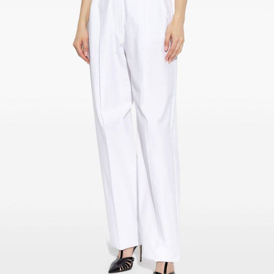 White pleat front design wide-leg silhouette hidden side pockets belt loops hook and zip fastening cotton trousers size and fit - this piece fits true to size. we recommend you get your regular size. model is 1,75m / 5ft 8in wearing size 40 (it)