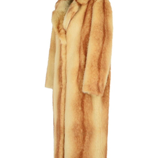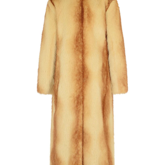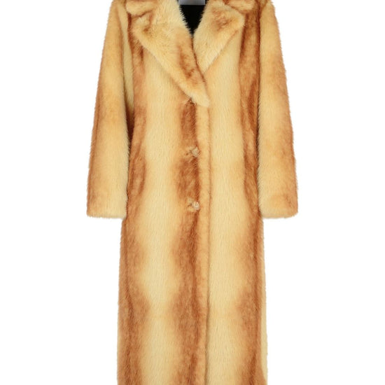 Beige gradient effect lapel collar button closure nora faux fur coat