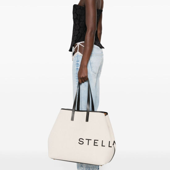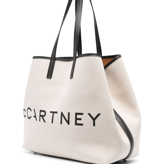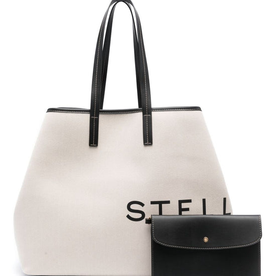 Ecru cotton blend canvas logo print to the front open top top clip fastening two flat top handles main compartment full lining removable pouch logo-engraved metal feet this piece comes complete with a protective dust bag. logo canvas tote bag size and fit - width 17,72 in / 45 cm
