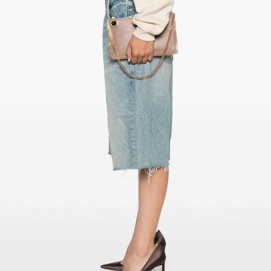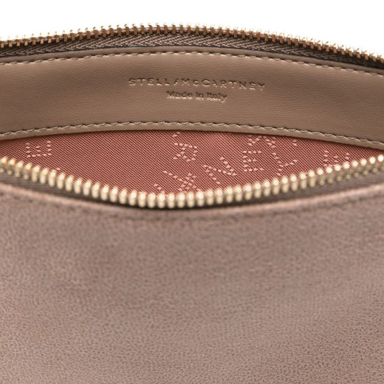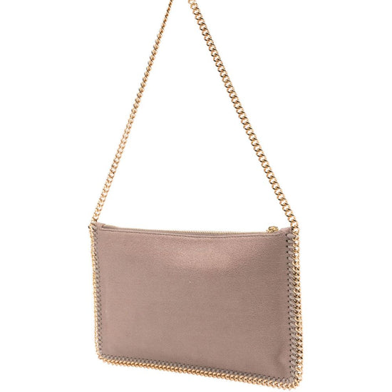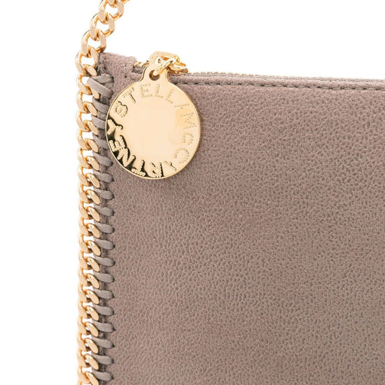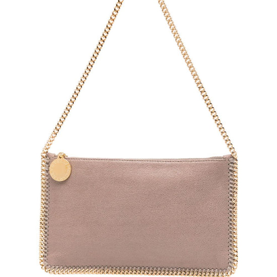 logo-plaque detail falabella clutch size and fit - height: 14 cm. width: 23 cm.