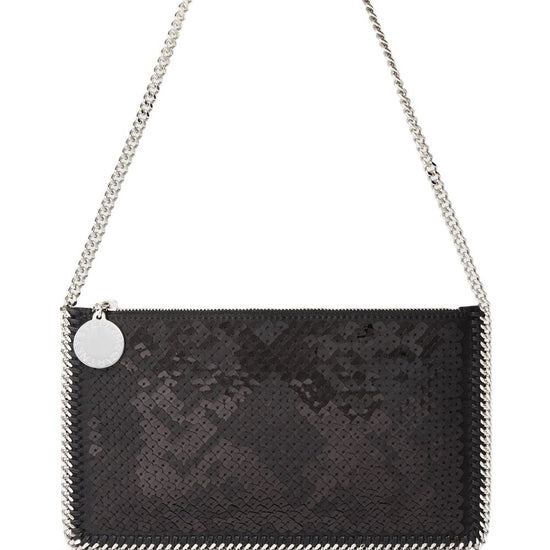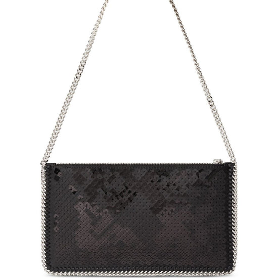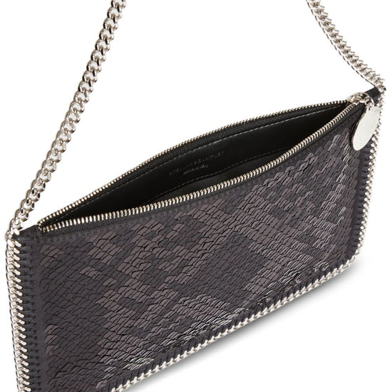 chain strap falabella mini pouch size and fit - depth: 1.0 centimetres. height: 14.5 centimetres. width: 24.0 centimetres.