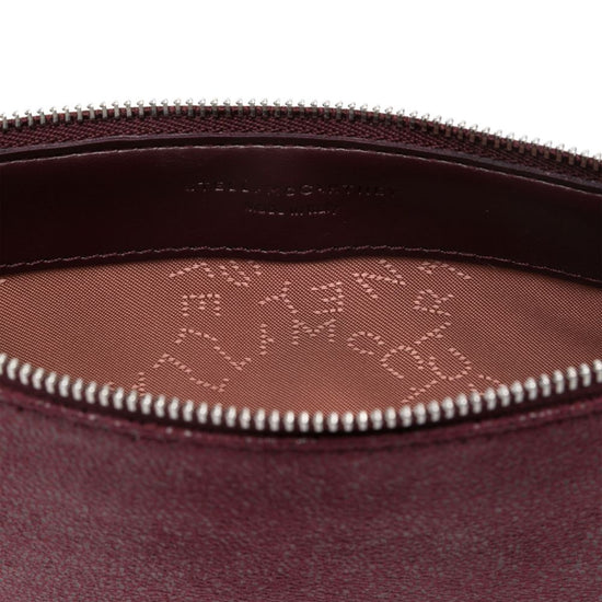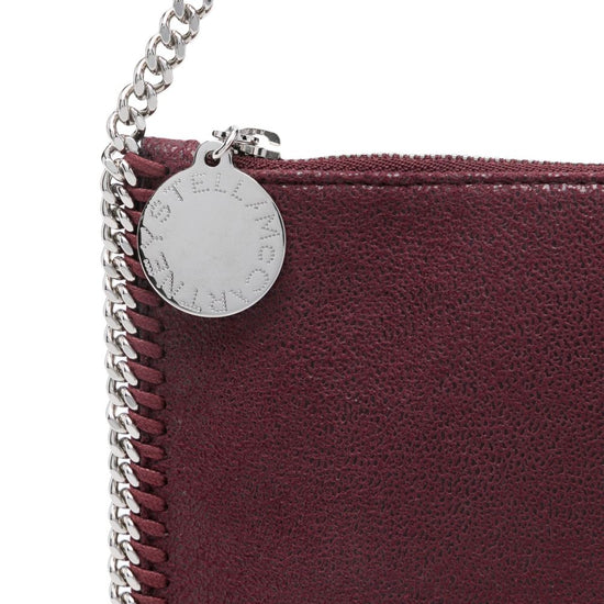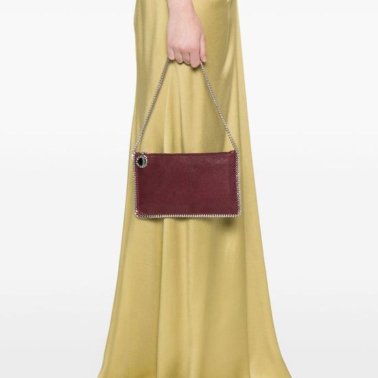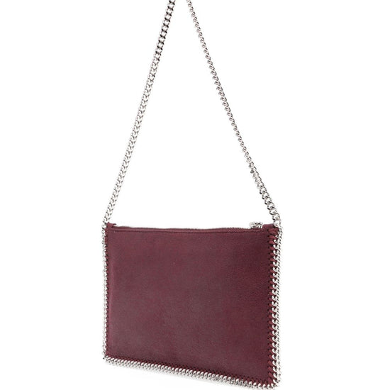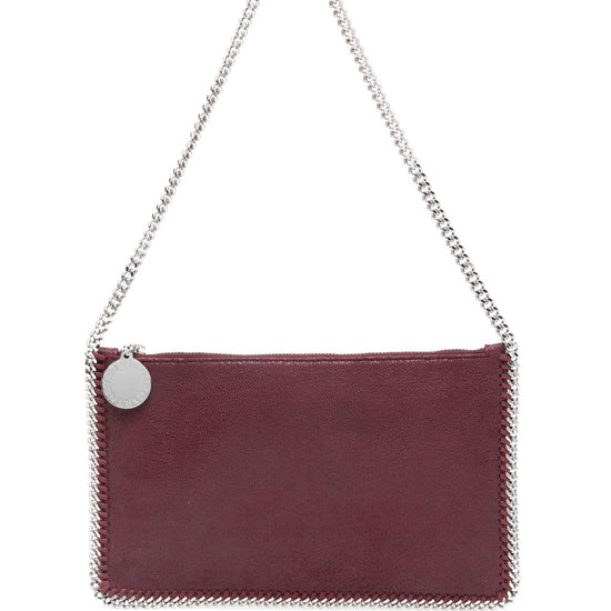 Amaranth purple top zip fastening chain-link shoulder strap logo pendant logo-jacquard lining falabella clutch size and fit - width 24 cm, height 15 cm, depth 2 cm, handle 20 cm