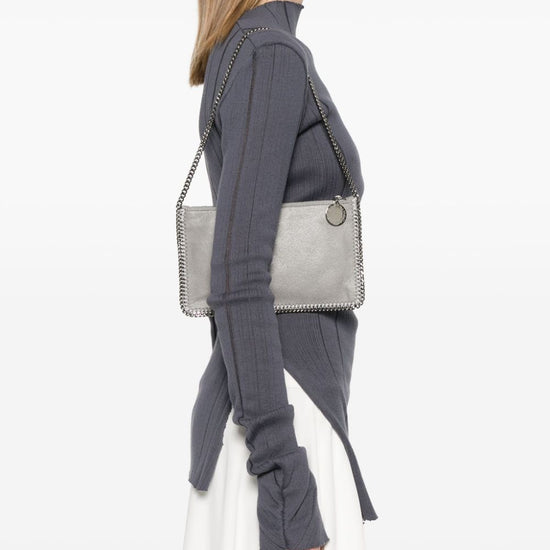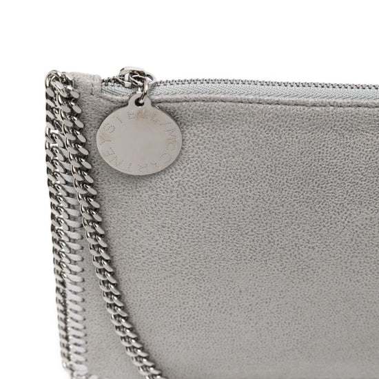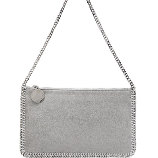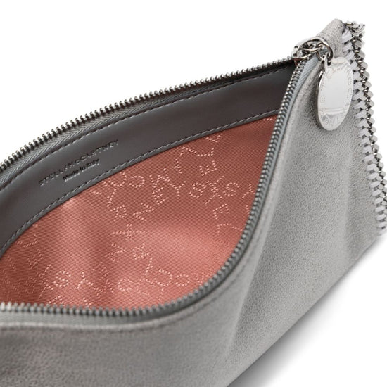 logo-jacquard lining falabella clutch size and fit - depth: 2.0 centimetres. height: 14.0 centimetres. strap: 53.0 centimetres. width: 24.0 centimetres.