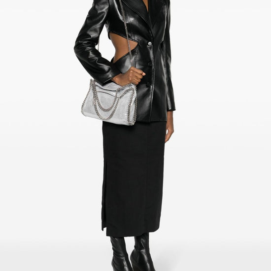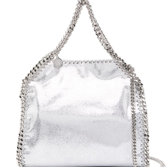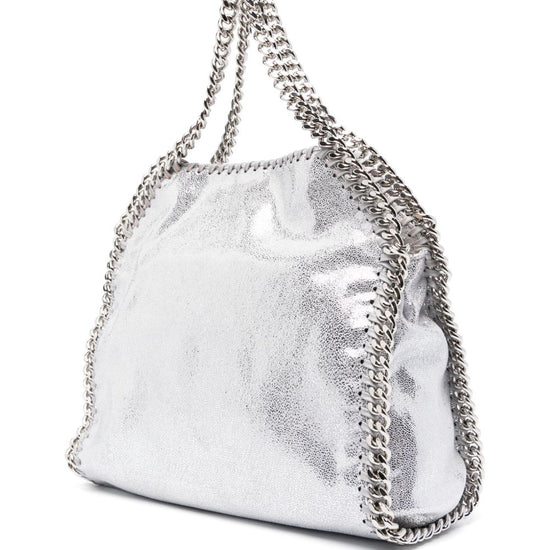 Silver-tone metallic effect whipstitch trim whipstitch chain trim logo charm magnetic fastening two chain-link top handles chain-link shoulder strap logo-jacquard lining debossed internal logo internal patch pocket main compartment silver-tone hardware this piece comes complete with a protective dust bag. falabella mini tote size and fit - depth: 9.0 centimetres. handle: 15.0 centimetres. height: 25.0 centimetres. strap: 50.0 centimetres. width: 27.0 centimetres.