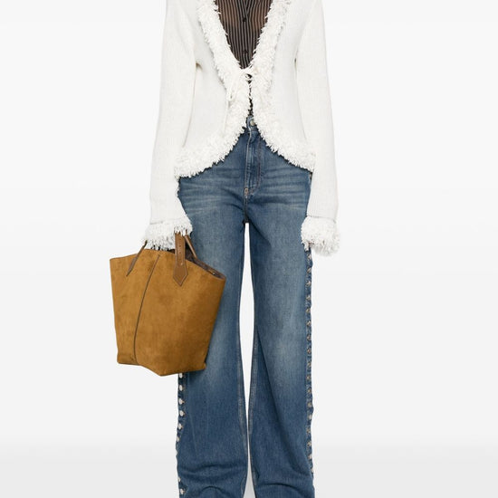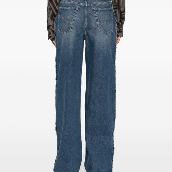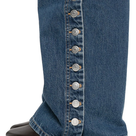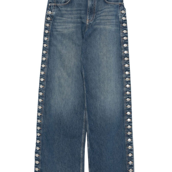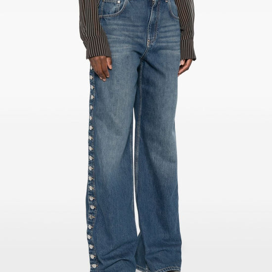 Blue straight leg button embellishment five-pocket styling wide-leg denim jeans