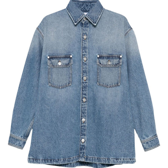 Blue cotton button fastening long sleeves two flap pockets shirt collar denim cotton shirt size and fit - this piece fits true to size. we recommend you get your regular size. model is 1,75m / 5ft 8in wearing size s
