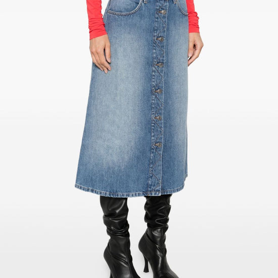 mid length  denim cotton midi skirt size and fit - this piece fits true to size. we recommend you get your regular size. model is 1,75m / 5ft 8in wearing size s