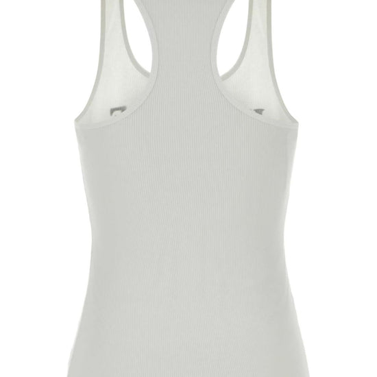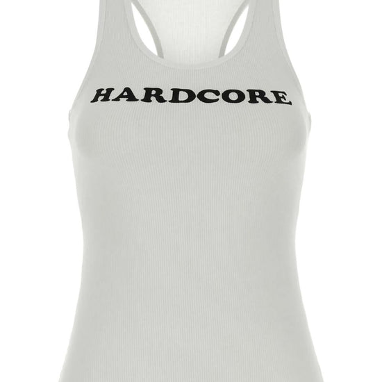 White fine ribbed racerback logo tag hardcore slogan cotton tank top