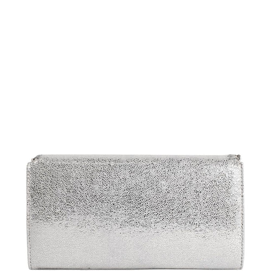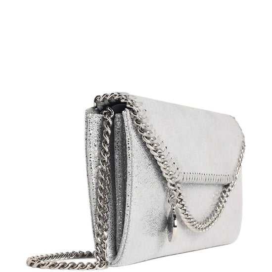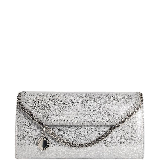 Silver-tone chain strap snap button closure zip pocket falabella continental wallet size and fit - .