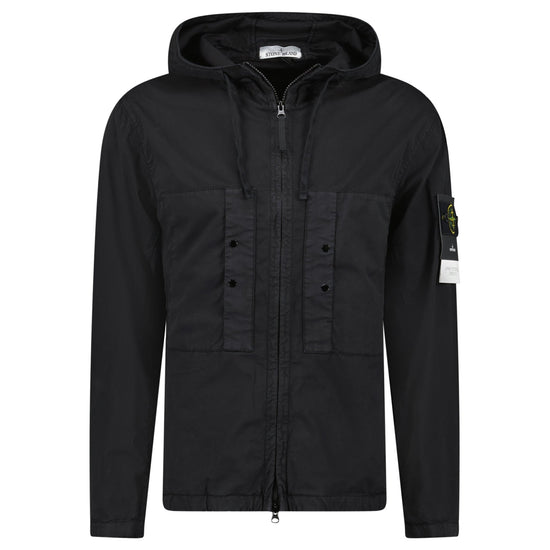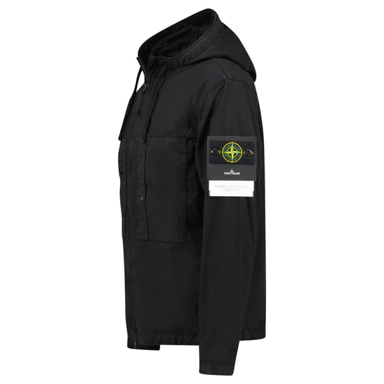 elevate your outerwear with the stone island supima cotton twill stretch-tc hooded jacket in black. crafted from premium supima® cotton twill with added stretch, this garment-dyed jacket delivers exceptional softness, durability, and freedom of movement. the hooded silhouette, concealed front fastening, and clean design are complemented by stone island’s iconic compass badge on the sleeve, making it a refined yet functional choice for transitional layering.