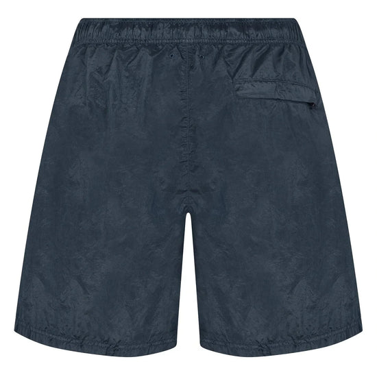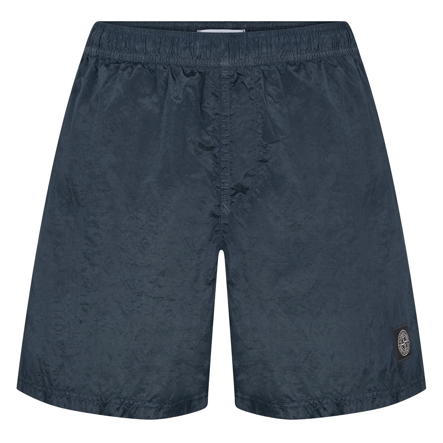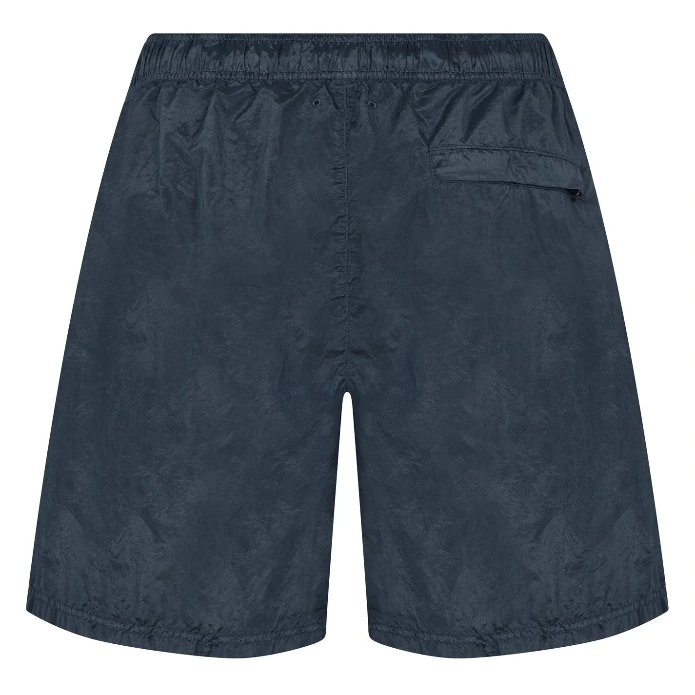 the stone island chrome swim shorts in navy are a stylish and functional choice for your next pool or beach outing. made from quick-drying, lightweight fabric, these shorts feature a drawstring waistband for a secure fit and a back pocket for small essentials. the iconic stone island compass logo is embroidered on the leg, adding a touch of luxury to the design. perfect for those who appreciate both style and functionality, these swim shorts are sure to become a go-to in your summer wardrobe.
