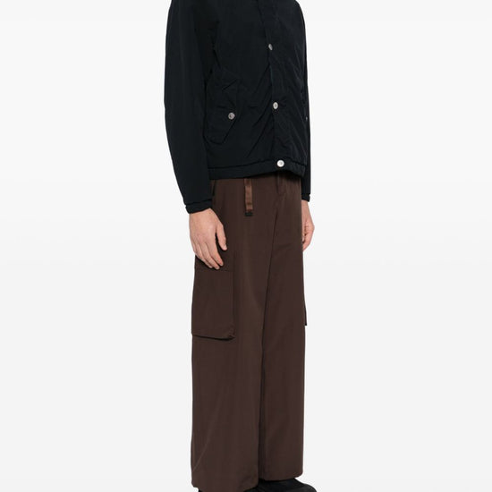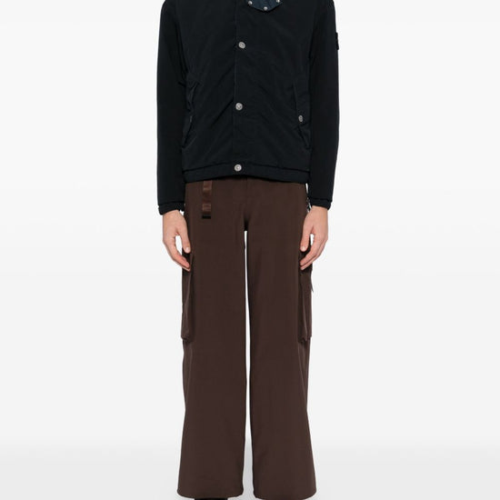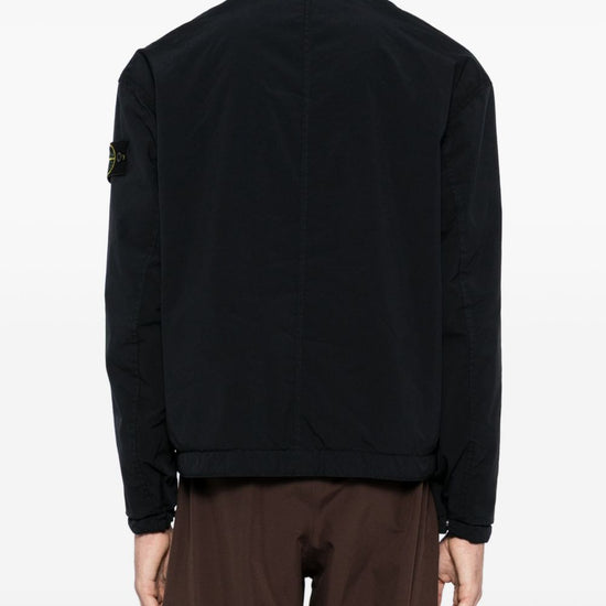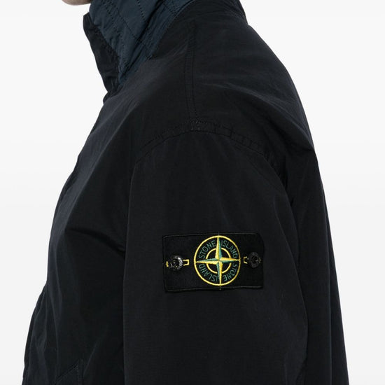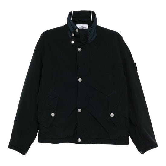 Dark blue front button fastening two side flap pockets long sleeves logo blouson jacket