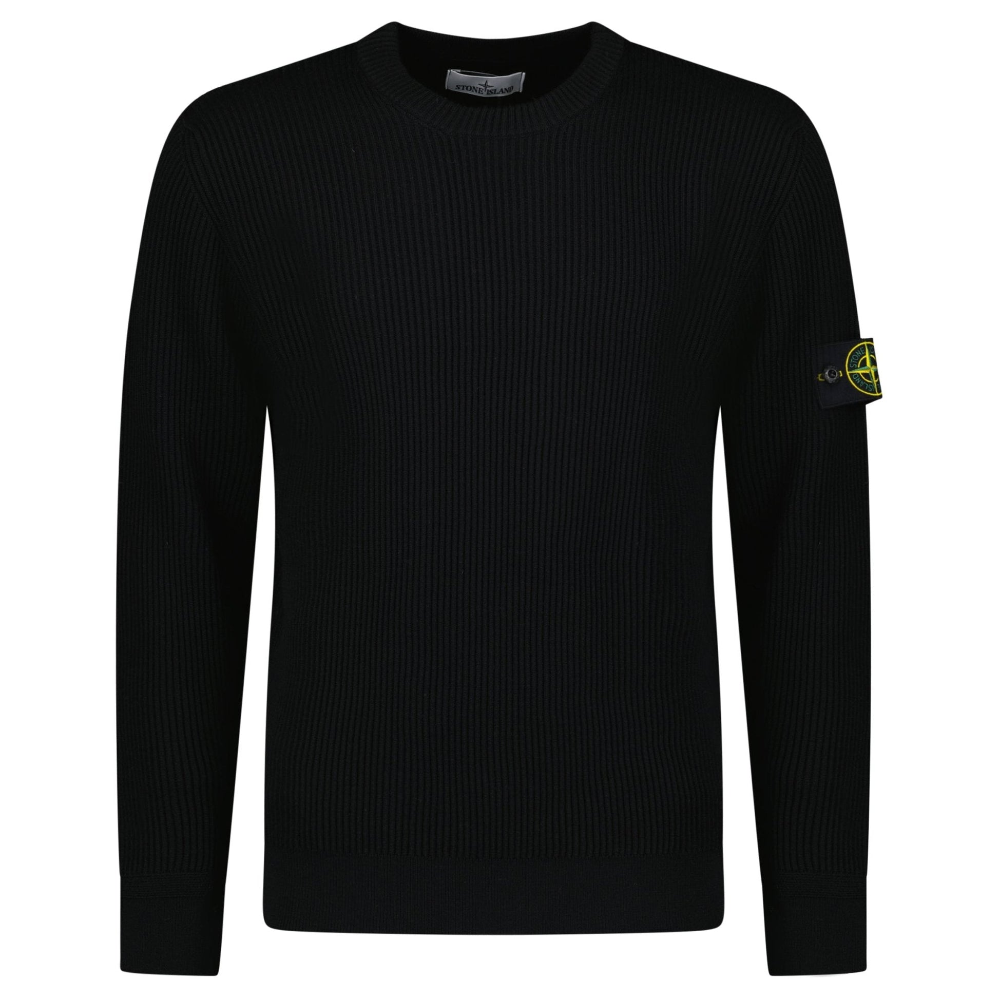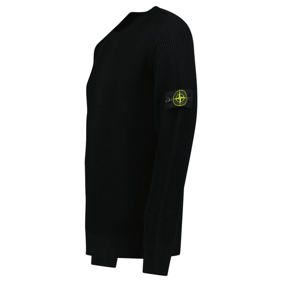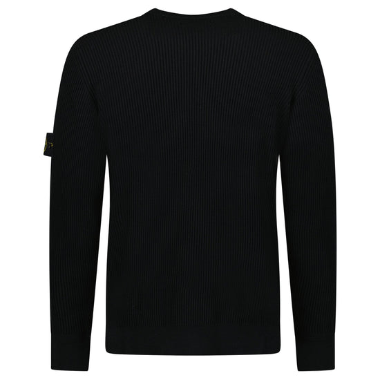 Stone Island Full Rib RWS Wool Crewneck Sweater with Band Motif in Black