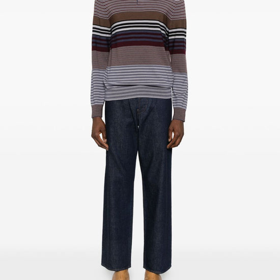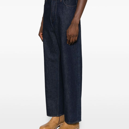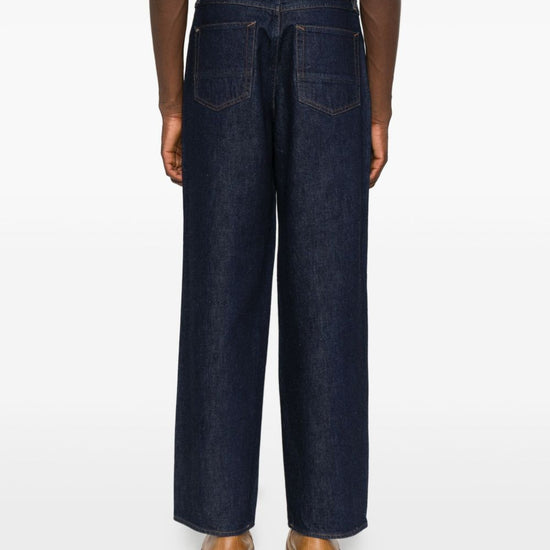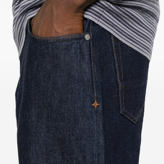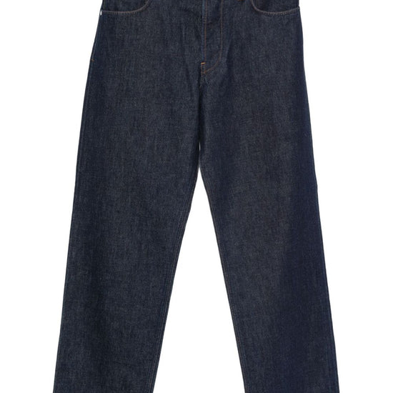 Dark blue five pockets button fastening belt loops slim fit denim jeans