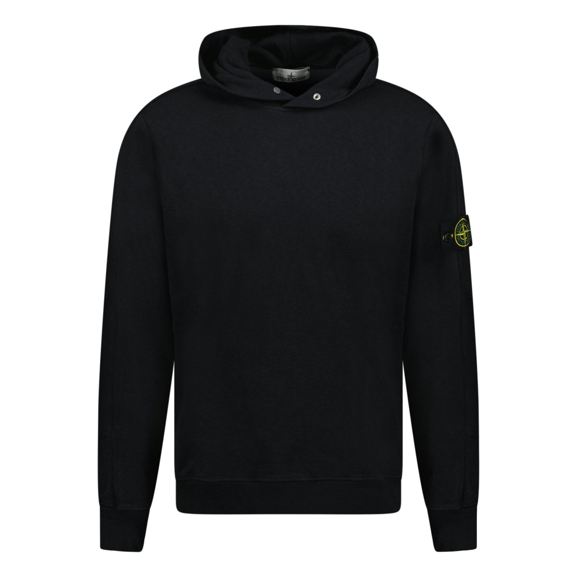perfect to style smart to casual, the stone island ‘old’ treatment hooded sweatshirt in black has been crafted from 100% cotton cut in a comfortable fit silhouette. boasting a staple colourway for a highly versatile styling piece, this hooded sweatshirt features the ‘old’ effect, an exclusive dyeing treatment and subsequent fading on the finished garment to create a slightly worn and three-dimensional appearance. the sweatshirt is complete with raglan sleeves, a snap-button hood, and a stone island badge at the sleeve for a designer stamp. pair with jeans for a casual outing or joggers for a relaxed look.