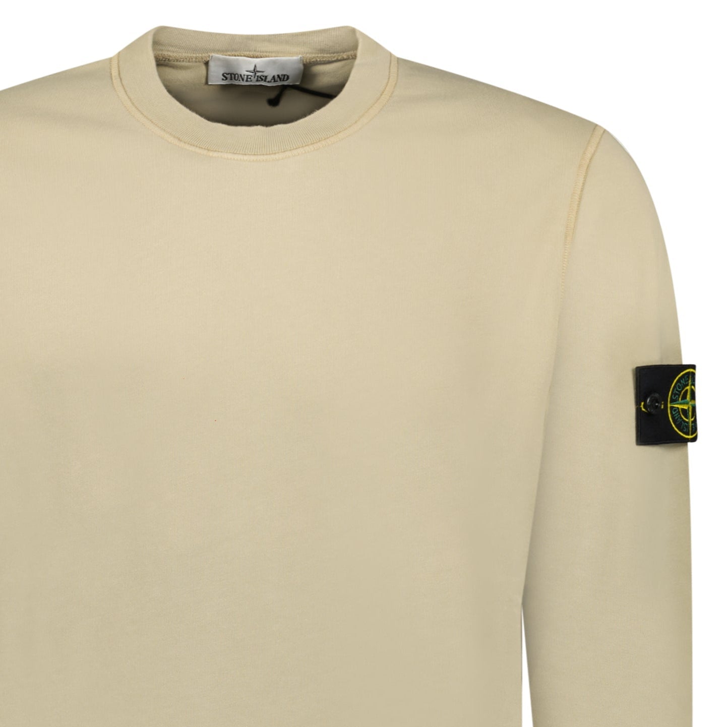 elevate your casual wardrobe with the stone island ribbed detailed crewneck sweatshirt in desert. crafted from 100% premium cotton, this sweatshirt delivers both comfort and durability while maintaining a sleek and timeless aesthetic. the ribbed detailing adds subtle texture, while the signature removable stone island badge on the sleeve enhances its iconic appeal. a versatile layering piece, perfect for any season.