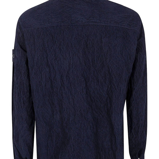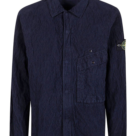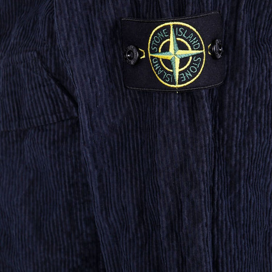Navy blue corduroy texture patch pocket button fastening long sleeves compass logo patch organic cotton shirt
