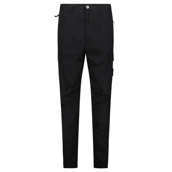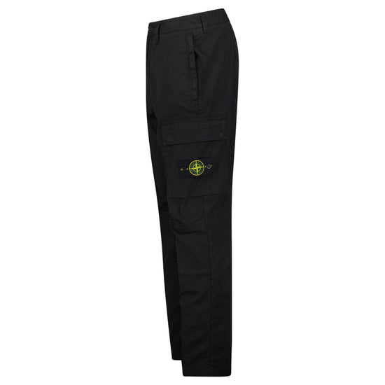 Stone Island Stretch Organic Broken Twill Cotton 'OLD' Effect Cargo Trousers in Black
