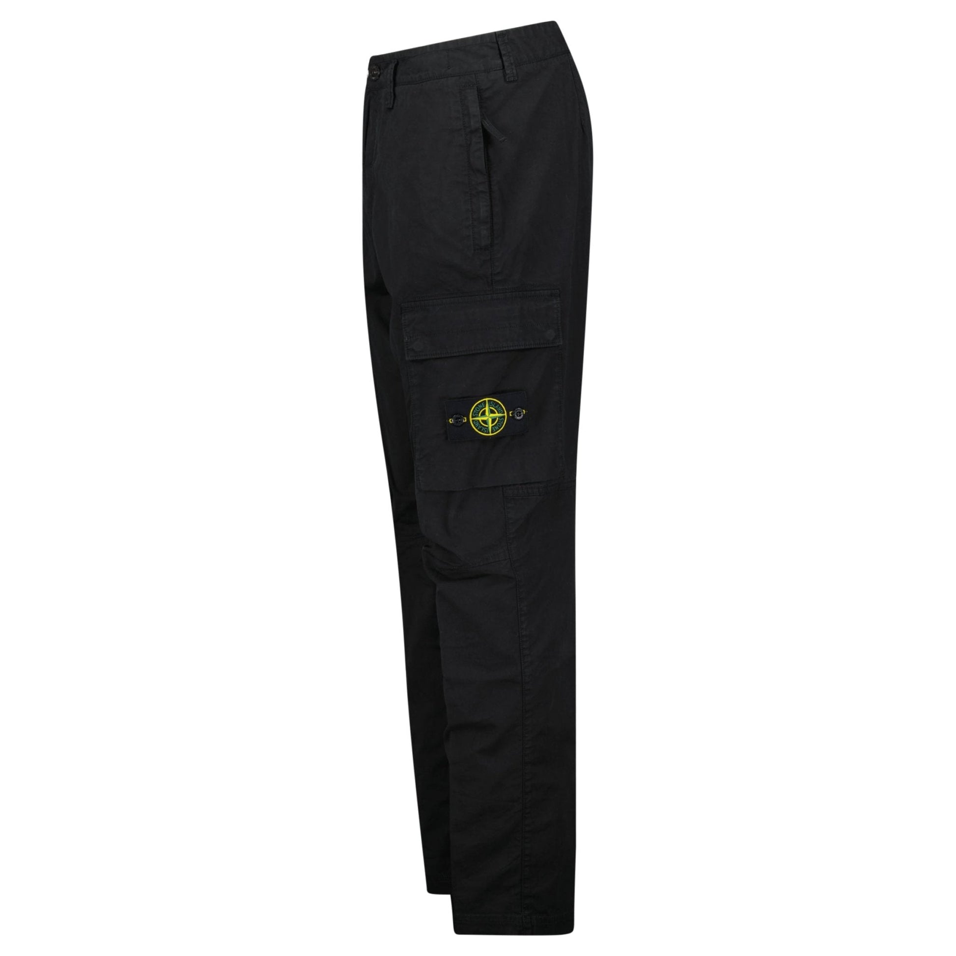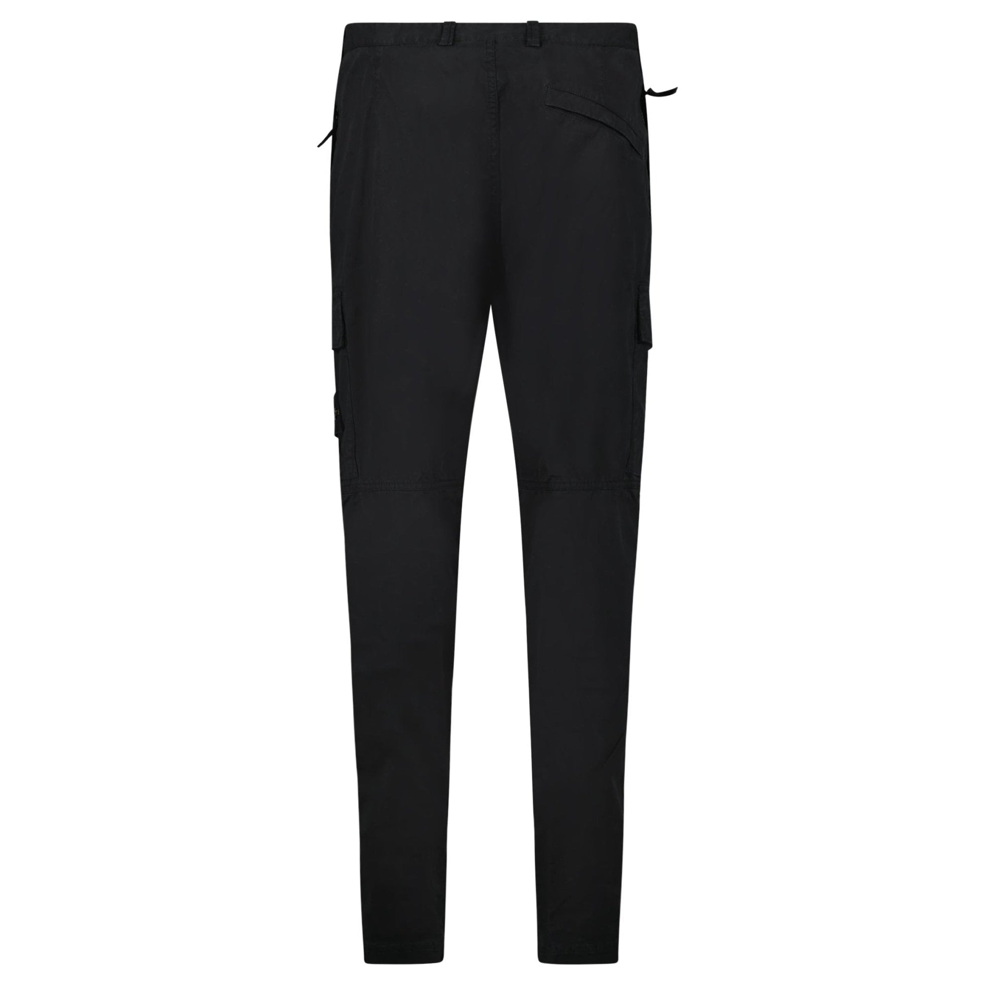 stone island stretch organic broken twill cotton 'old' effect cargo trousers in black offer a perfect balance of style and practicality. crafted from stretch organic broken twill cotton and garment-dyed for a slightly worn appearance, these trousers combine a rugged aesthetic with functional detailing.