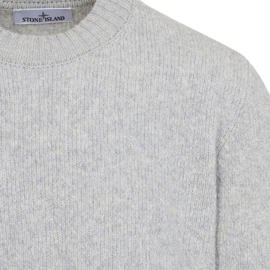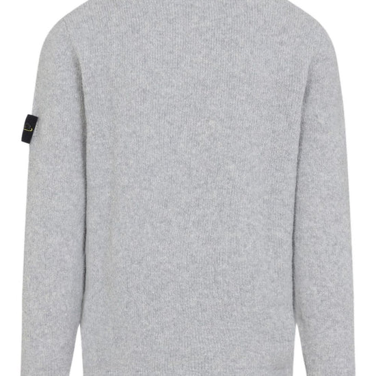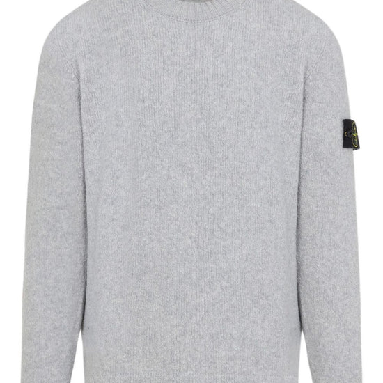 Dark gray ribbed knit crew neck long sleeves logo patch wool wool blend crewneck sweater