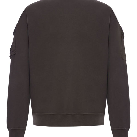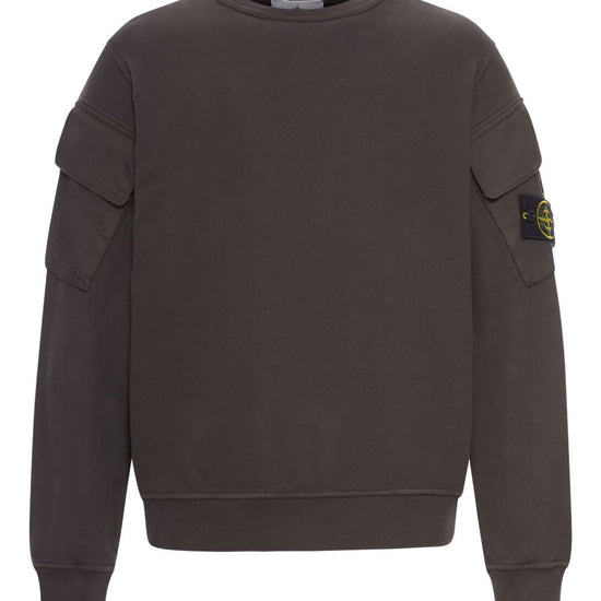 Grey cotton fabric patch pocket crew neck long sleeves ribbed cuffs logo cotton crewneck sweatshirt