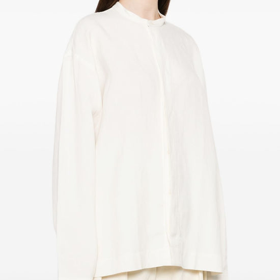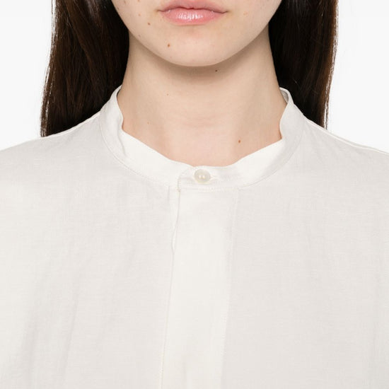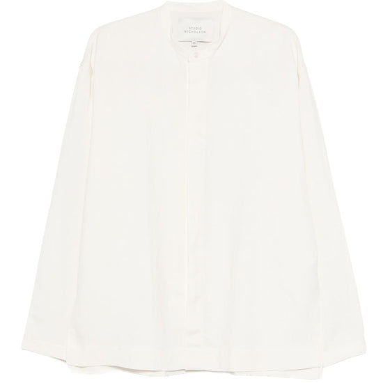 Off white long sleeves button fastening relaxed fit straight hem karst linen blend shirt