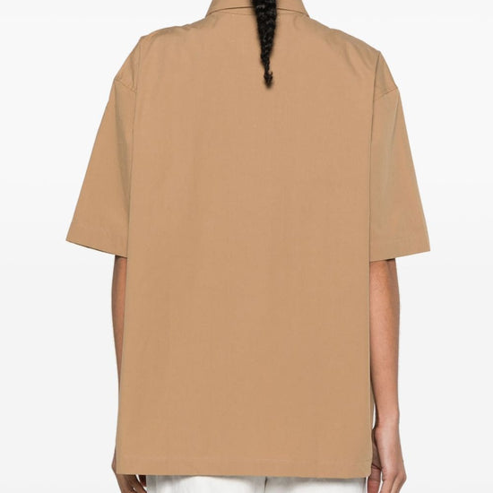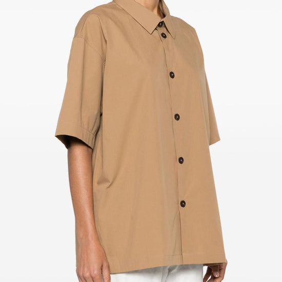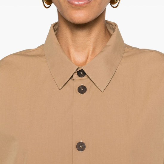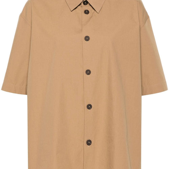 Sand beige cotton poplin texture classic collar front button fastening short sleeves straight hem doppia piega cotton shirt size and fit - this piece fits true to size. we recommend you get your regular size. model is 1,75m / 5ft 8in wearing size 1 (num).