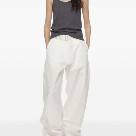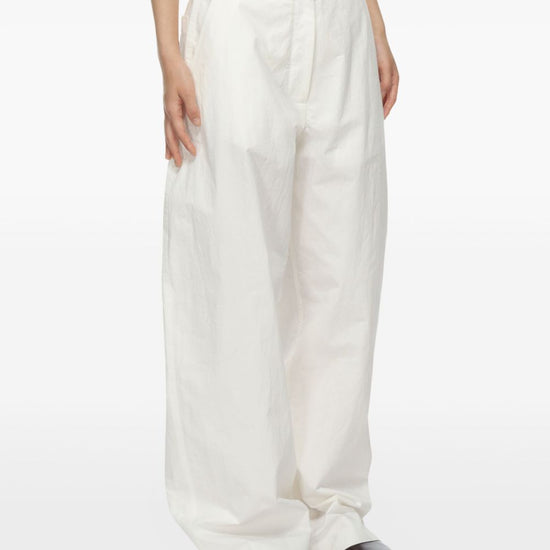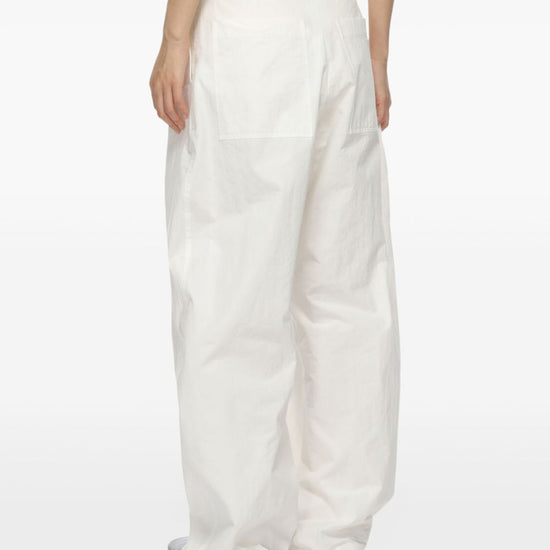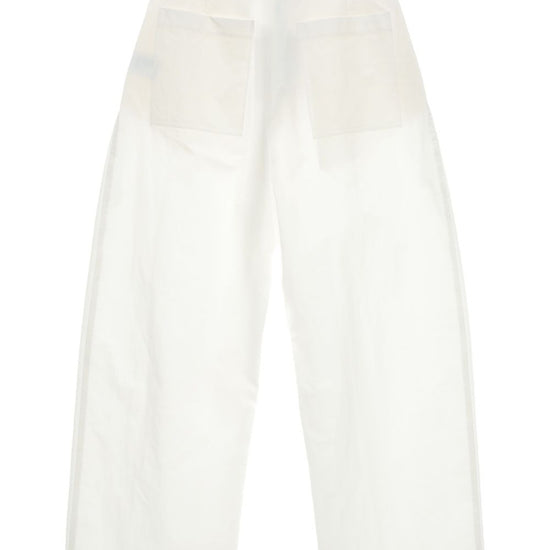 two rear patch pockets  round leg cotton trousers size and fit - this piece fits true to size. we recommend you get your regular size. model is 1,75m / 5ft 8in wearing size 8 (uk)
