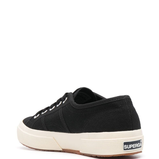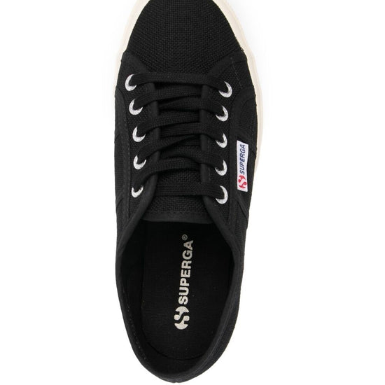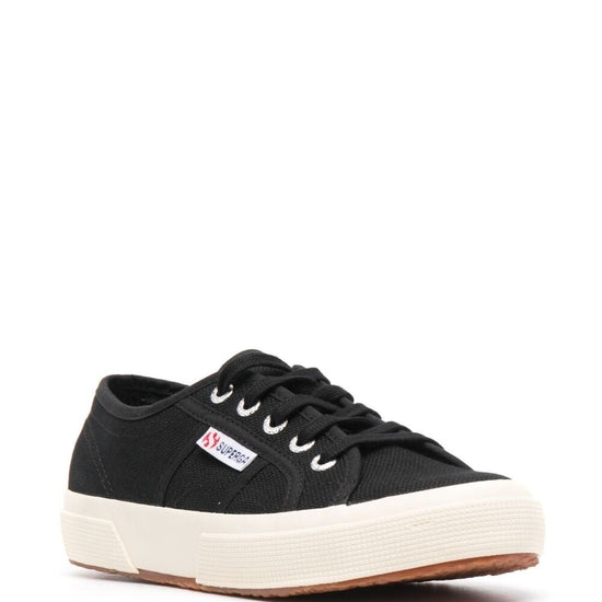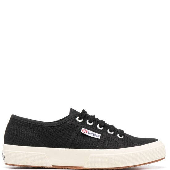 Black cotton lace-up low-top sneakers from superga featuring logo patch to the side, round toe, front lace-up fastening and flat rubber sole. 2750 cotu classic sneakers size and fit - heel 1,2 in / 3 cm; platform 1 in / 2,5 cm