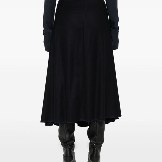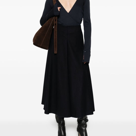 Blue cotton pleated design rear zip fastening a-line design cotton midi skirt