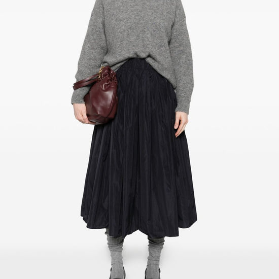 Black elasticated waistband midi length taffetas midi skirt size and fit - .