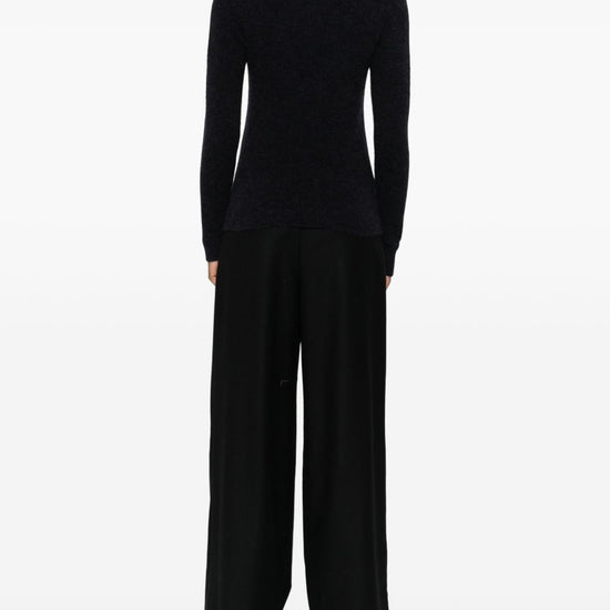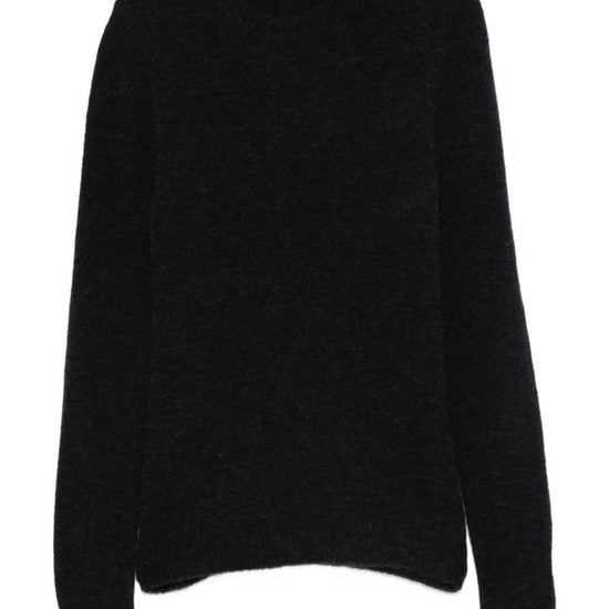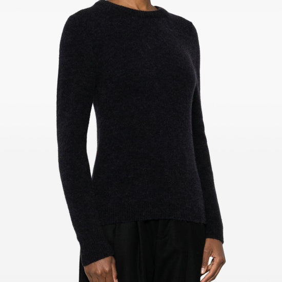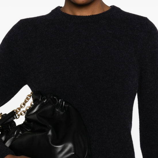 Blue crew neck long sleeves knitted wool crewneck sweater
