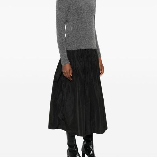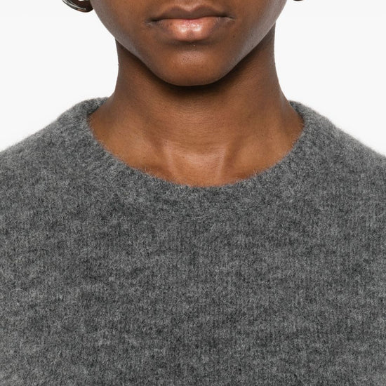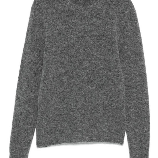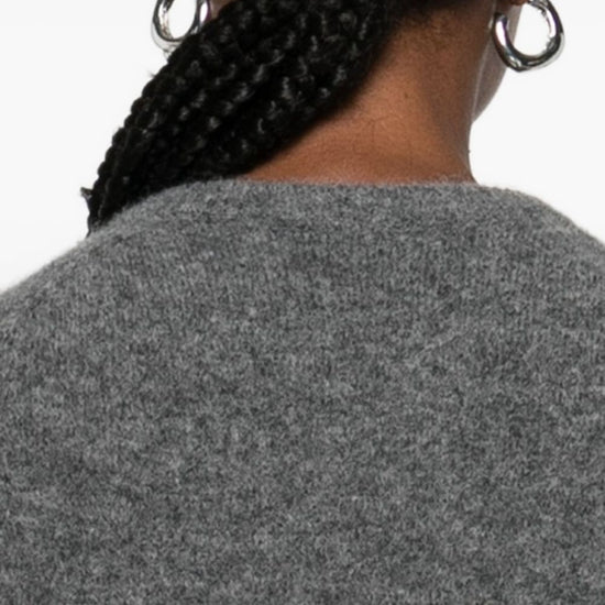 Grey round neck long sleeves ribbed cuffs wool crewneck sweater