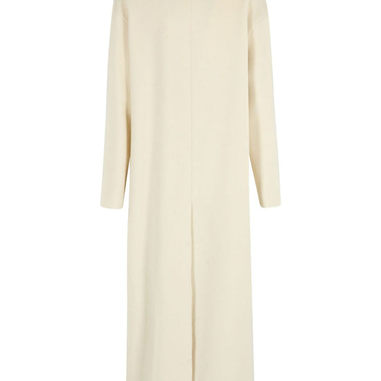 Beige flap pockets button fastening notched lapels long sleeves wool single-breasted coat