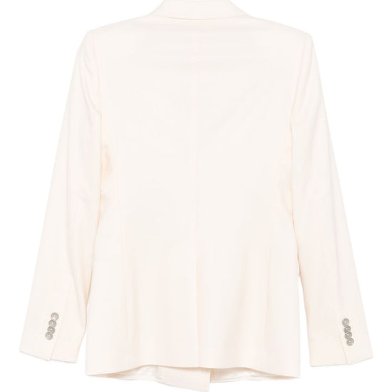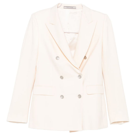 Cream double-breasted button closure long sleeves buttoned cuffs wool blend suit