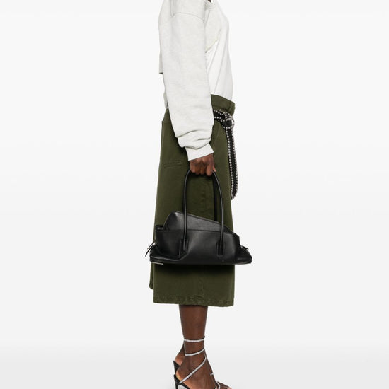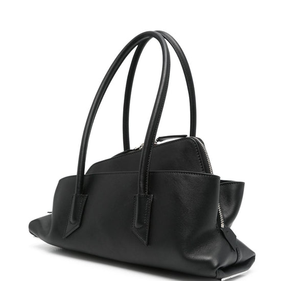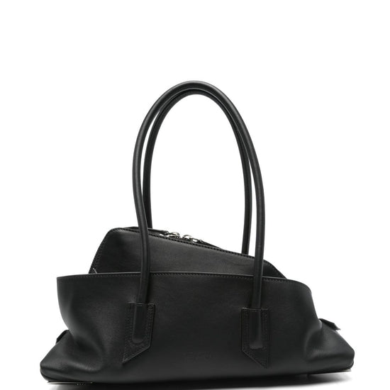 Black top zip fastening two rolled top handles metal feet this piece comes complete with a protective dust bag. la passeggiata small leather shoulder bag size and fit - depth 13 cm. handle 25 cm. height 17 cm. width 33 cm.