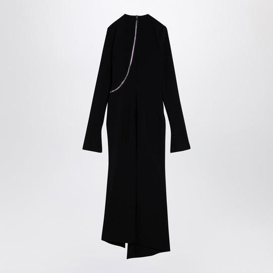 Black cotton crewneck midi dress from the attico featuring long sleeves, an exposed logo zip detail, an asymmetric hem and a slim fit. size and fit - model wears size 38 it model measurements: height: 179 cm chest: 82 cm waist: 65 cm hips: 90 cm