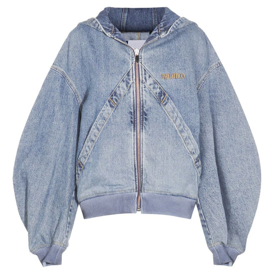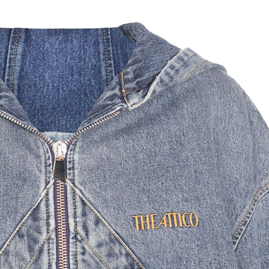 embroidered logo hooded denim jacket size and fit - this piece fits true to size. we recommend you get your regular size. model is 1,75m / 5ft 8in wearing size 40 (it)