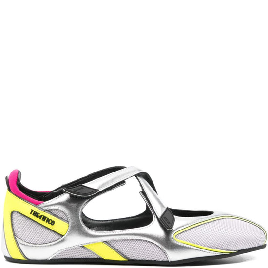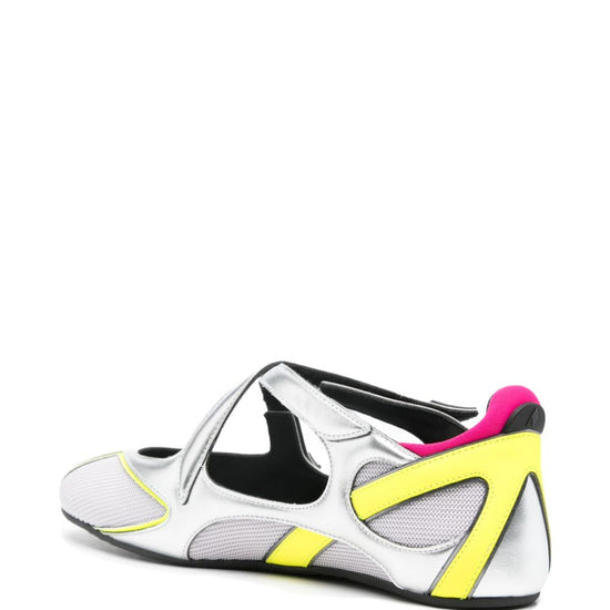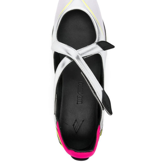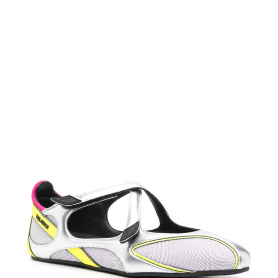 Grey cut-out design strap pointed toe flat sole logo print on the side floor 01 ballets
