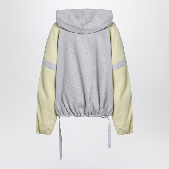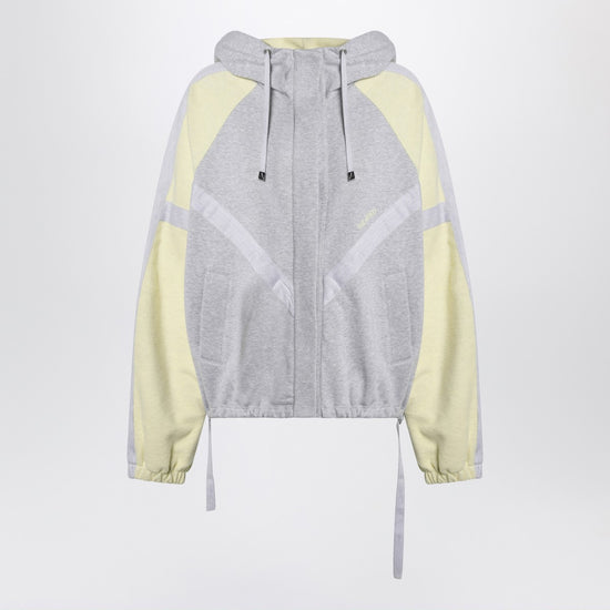 Bomber sweatshirt by the attico in grey and pale yellow cotton color-block design, featuring concealed front zip, drawstring hood, wide long sleeves with dropped shoulders, elasticated trims, two pockets, and embroidered front logo lettering. size and fit - model wears size 40 it model measurements: height: 179 cm chest: 82 cm waist: 65 cm hips: 90 cm