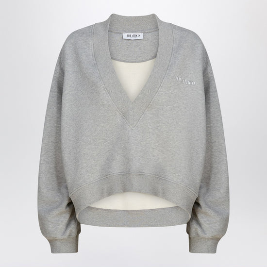The attico sweatshirt in grey mélange cotton, featuring contrasting embroidered logo lettering on the chest, deep v-neckline, long sleeves, and ribbed trims. size and fit - model wears size 40 it model measurements: height: 178 cm chest: 83 cm waist: 63 cm hips: 91 cm