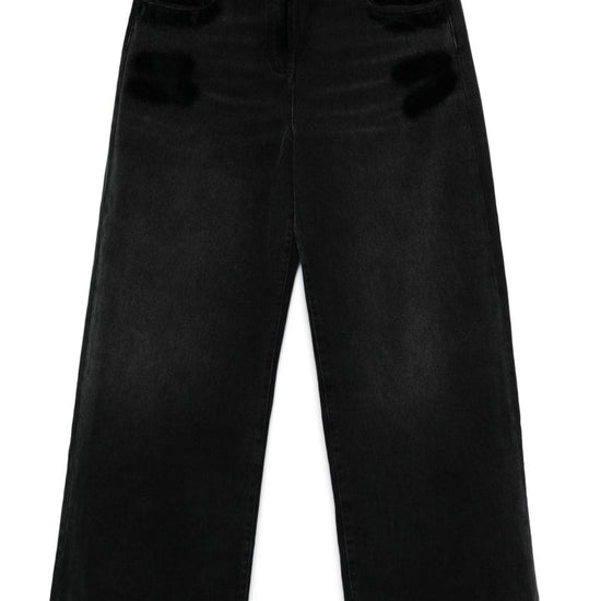 Black cotton denim distressed effect layered waist logo patch to the rear embroidered logo to the rear logo-debossed buttons wide leg mid-rise concealed fly and button fastening belt loops classic five pockets straight hem wide-leg denim jeans size and fit - this piece fits true to size. we recommend you get your regular size. model is 1,75m / 5ft 8in wearing size 27 (waist cm)