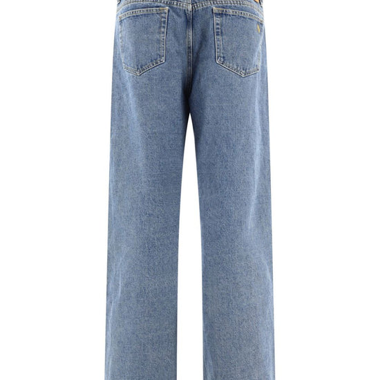 Indigo blue washed denim embroidered logo to the rear logo patch to the rear classic five pockets front button and zip fastening belt loops straight leg straight hem wide-leg denim cotton jeans size and fit - this piece fits true to size. we recommend you get your regular size. model is 1,75m / 5ft 8in wearing size 27 (waist cm)