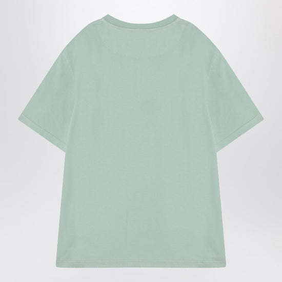 Mint green cotton t-shirt from the attico featuring short sleeves, ribbed crew neck, tone-on-tone chest logo, shaped hem and oversized fit. size and fit - model wears size 40 it model measurements: height: 180 cm chest: 85 cm waist: 66 cm hips: 89 cm