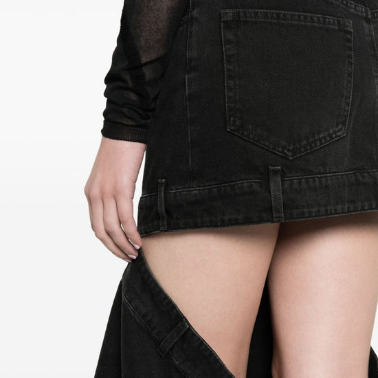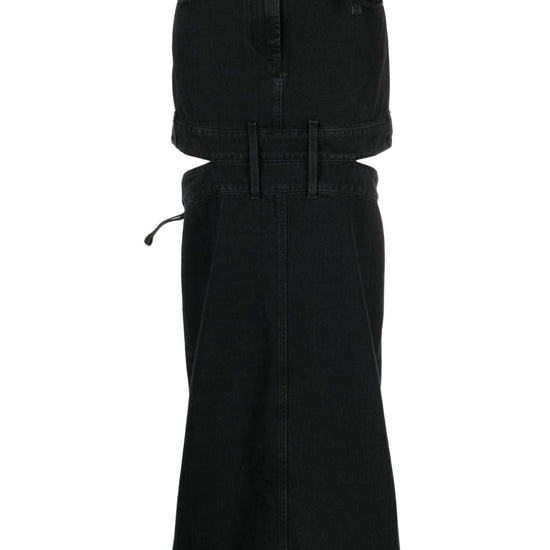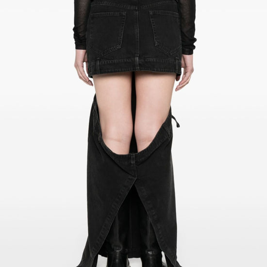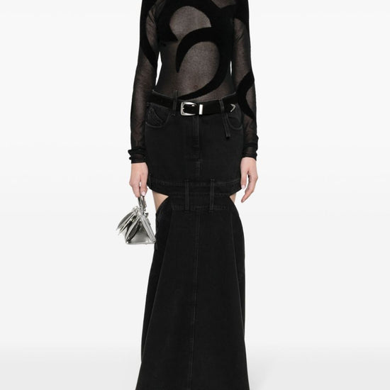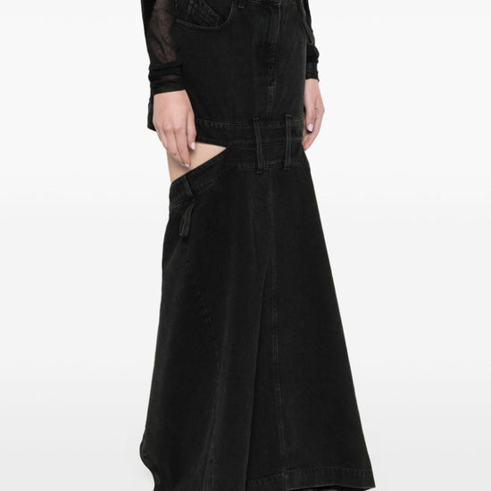 Black cotton embroidered logo to the rear cut-out detailing mid-rise belt loops front button and zip fastening classic five pockets floor-length denim skirt size and fit - this piece fits true to size. we recommend you get your regular size. model is 1,75m / 5ft 8in wearing size 27 (waist cm)
