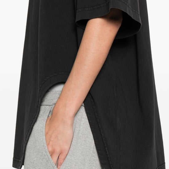 Black cotton round neck short sleeves cutout detail straight hem asymmetric cotton t-shirt