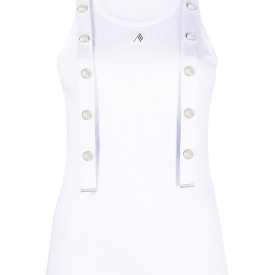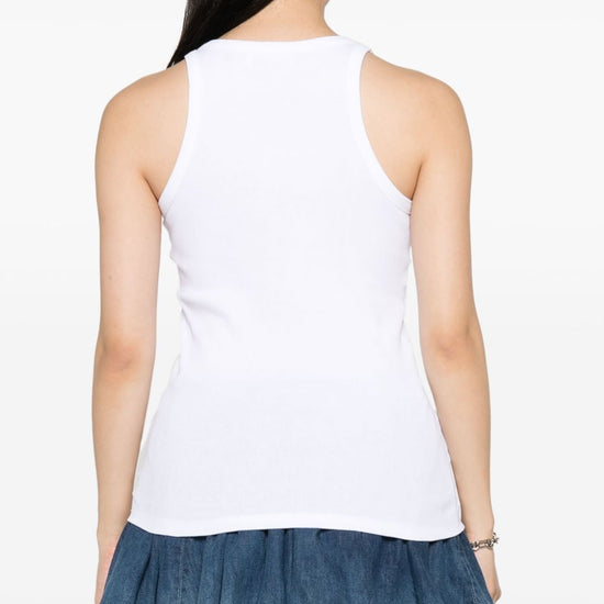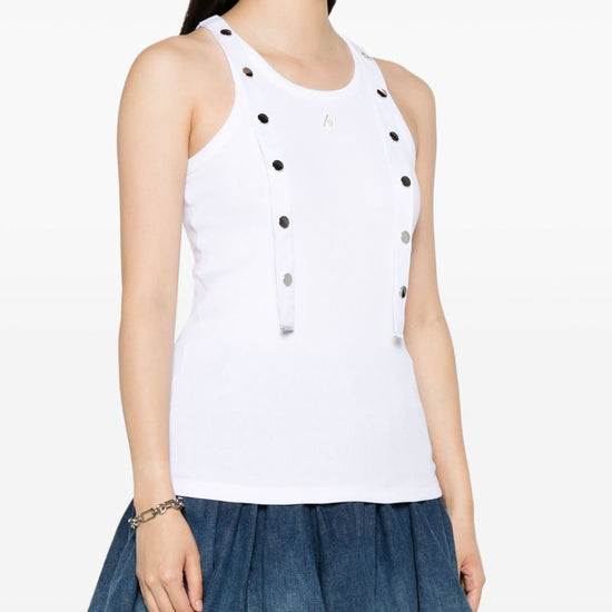 Optical white cotton ribbed knit piped-trim detailing silver-tone logo plaque stud embellished strap detailing scoop neck sleeveless straight hem ribbed cotton tank top size and fit - this piece fits true to size. we recommend you get your regular size. model is 1,75m / 5ft 8in wearing size 40 (it)