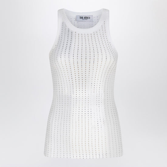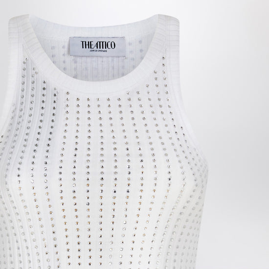 The Attico White tank top with rhinestones